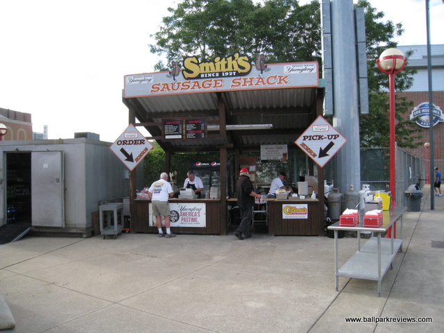 - The main concession stands are located behind the third base grandstand and along the first base concourse. Some of the unique food options available at these stands include the pulled pork parfait, fresh salads, pizza, and pulled pork sandwiches.