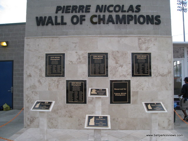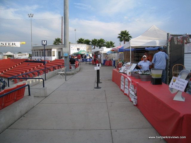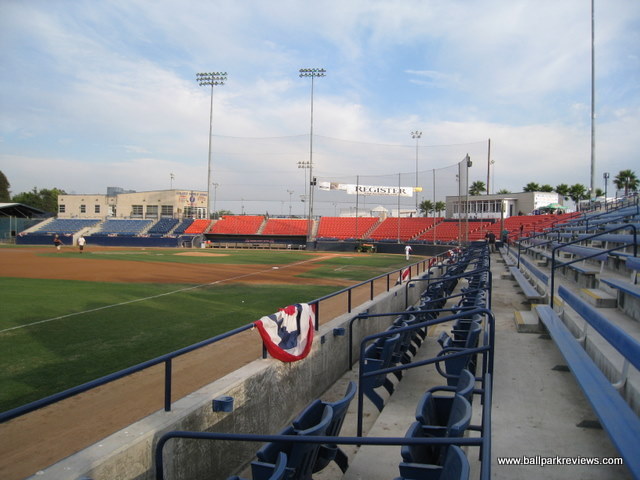 | Goodwin Field was my first experience with minor league baseball in southern California and it certainly did not leave me with a favorable impression. The ballpark itself is fine, but the atmosphere and the team operations were simply pathetic. With a huge population base, you'd think the Flyers would have no problem drawing decent crowds, but instead they struggle to draw 500 fans most nights. But after experiencing it first hand, I guess I know why. Goodwin Field is located on the campus of Cal State Fullerton, a university with a strong baseball program. Parking is plentiful, but costs $5. But only on weekdays. On weekends it's free for some reason. The ballpark features a complete uncovered grandstand with mostly stadium seats, though there are some bleacher sections down each line. Most of the seats are close enough to the field, but unfortunately the netting extends to the end of each dugout meaning the majority of the views are obstructed. A large scoreboard is located behind the left field fence, though the message board is not used at all. I was surprised to see that the field was in such bad shape – the grass had lots of brown patches and it just did not look good. Perhaps it just gets too much use. The concourse runs along the top of the seating bowl and is in view of the field. There are no permanent concession stands – instead there is a trailer which serves as the main stand and several other smaller stands. The concessions are lacking in both variety and quality. And besides that, they are overpriced. Hot dogs are $5, sausages are $6, and a large beer is $12. The only unique item they have is the tri-tip sandwich, which seems to be a favorite in SoCal. Other than the poor concessions, my biggest complaint was with the atmosphere and unprofessional staff. When I arrived at the park just before the gates were to open, employees were shooting each other with water guns and goofing off. Even after the gates opened, they still didn't seem to care that they had a job to do. If they had a boss, he was either not there that night or just didn't care. As for the atmosphere, it was hardly family friendly, which is always the case at minor league ballparks. I realize this is southern California, but do the Flyers really need to have a dance team of scantily dressed “women” ? Lots of men were gawking, but apparently even they couldn't help to bring out more fans. There were several on field promotions between innings including race the mascot (a wolf named “Coal Train”), tug of war, and “throw the hoop on the dance girl”. Lots of music was blared between batters, but sound effects were kept to a minimum (with the exception of an occasional howl). The team has a play area in the left field corner which consisted of two dirty inflatables. Overall, it just didn't seem the Flyers were putting much effort into impressing the fans that did come out. Lackluster concessions, an atmosphere geared more towards dirty old men than kids, and staff members who didn't want to work are all signs to me that the Flyers' management is just plain lazy. Tapping hall of famer Gary Carter to manage the team in 2008 seemed like a great move, but it didn't help to draw any more fans. Although the Flyers did end up winning the Golden League championship. With so many other ballparks in southern California, it's hard for me to recommend Goodwin Field. Because of a poor lease situation, the Flyers have decided to pursue a new ballpark at the location of Ameriage Park. During this time the Flyers will be on hiatus.