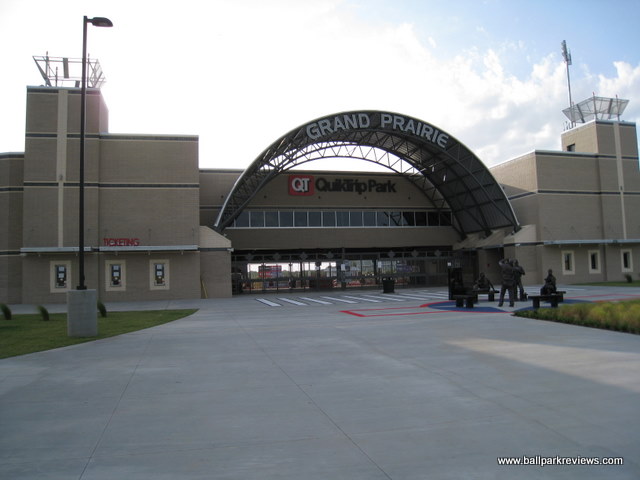| With the opening of QuikTrip Park, Grand Prairie became the latest Dallas suburb to get its own minor league team. Located in between Dallas and Fort Worth, and just a few miles from The Ballpark at Arlington, QuikTrip Park does not break any new ground in terms of ballpark architecture. It most resembles Campanelli Stadium in Brockton with its red seats and metal suite level. Despite a huge population base and a brand new ballpark, Grand Prairie has not been a great draw in its first season. I was not able to get into QuikTrip Park on my 2008 visit. In 2016, Grand Prairie shared the AirHogs with Amarillo - both teams hosting 25 games. This does not bode well for the future of professional baseball here. With weak attendance numbers in recent years, 2016 could be the last season for the AirHogs. Professional baseball did last here thru 2019, but starting in 2021 it was planned to be turned into a cricket venue.