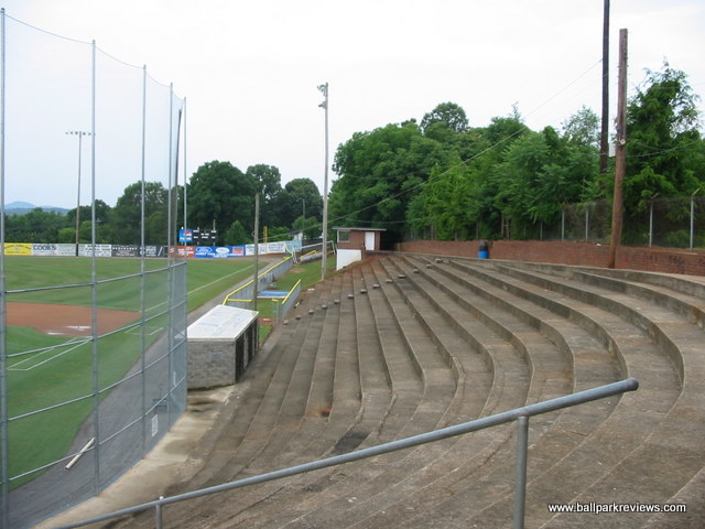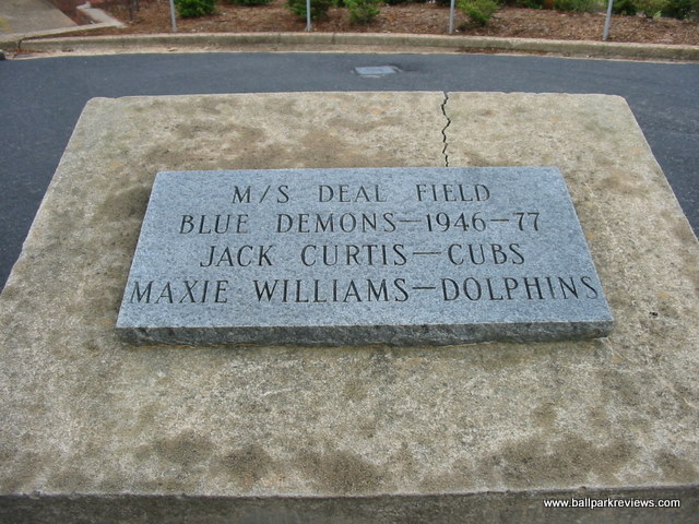 | M.S Deal Stadium hosted professional baseball for just one season, 1951, but it was a memorable one as the Granite Falls Graniteers of the Western Carolina League went a miserable 14-96. After serving exclusively as an amateur facility since 1951, pro baseball returned to M.S. Deal Stadium in 2006 when the Hickory Crawdads played one home game here as a special "throwback" event. The ballpark, located on the grounds of the Granite Falls Middle School, consists of all concrete seating, with no chairs or benches. There has been talk about the Crawdads game being an annual event, though the ballpark wouldn't seem to warrant this kind of attention. Still, it was nice to see pro baseball return here for at least one day.