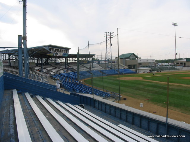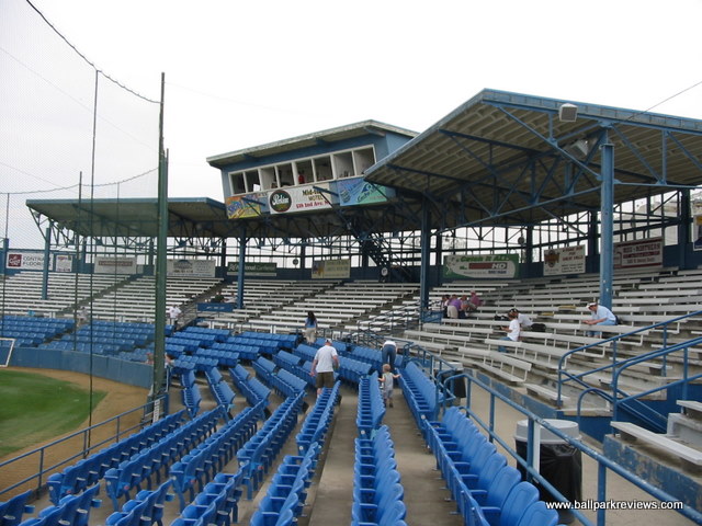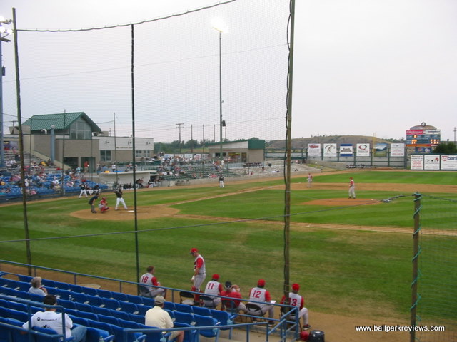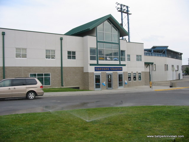 | Centene Stadium (formerly Legion Park) is in the midst of a major renovation project as of 2006. At the Rookie League level, this is the way to go. While Billings has been discussing knocking down Cobb Field and rebuilding, Great Falls has taken the route of slowly renovating the existing ballpark. And the results so far are fantastic as they have been able to keep the essence of the old ballpark. Located north of the downtown and close-by to the Missouri River, Centene Stadium does not have the best of settings. There is no view behind the outfield wall and located adjacent to the ballpark is a General Mills flour plant. As of late 2006, the ballpark basically has two distinct sections - the original ballpark section and the new section. But the integration between the two is well done. The original covered grandstand has about 10 rows of box seats as well as metal bleachers. The new section, located down the third base line, consists of box seats, as well as some bleachers, a picnic porch and a grassy berm area. There is also a very old wooden bleacher section down the first base side which is scheduled to be removed when that side of the ballpark is renovated. As with other older ballparks, the sightlines are not always great. There is a fence or netting which seems to obscure the view from almost every seat in the house. The concourse runs beneath the grandstand and features several concessions stands. The gift shop and team hall of fame are located in the new section. While the hall of fame contains lots of memorabilia from past seasons, its location is a bit hidden and didn't seem to be getting much traffic. Concessions at Centene Stadium are average at best. The variety is decent (sausages, burgers, super nachos), but the quality isn't too good. Fortunately the prices are quite cheap. One highlight of the concessions is that they offer TCBY and smoothies (from the "Smooth Operator down the RF line). As with other parks in this part of the country, the atmosphere is pretty laid back. The team does do lots of between inning games and there are some effects played, but overall fans seems to be into the game. A couple of interesting things to note, which I don't ever recall seeing. First, the national anthem was sung by the PA announcer. He didn't have the best voice, but certainly didn't seem embarrassed. Also, the pledge of allegiance was done during the 7th inning stretch. It's these type of unique touches that really add a lot of charm to the minor league experience. With so many teams having a script they follow for their game day operations, it is quite refreshing to see teams that do things a bit differently. Centene Stadium is a great little ballpark that should only get better with the next set of renovations. Another must see ballpark in the state of Montana.