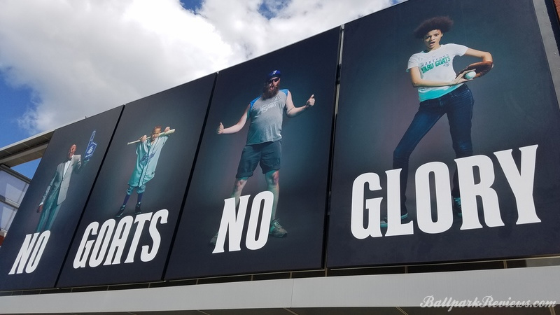 - The team has definitely embraced the goats theme. From concession stand names to outside signage to the live goats on hand, you definitely won’t forget the name of the team that plays here.