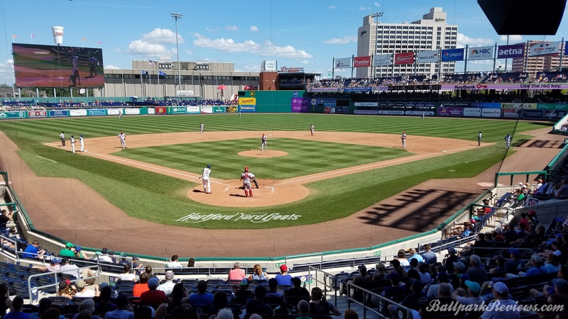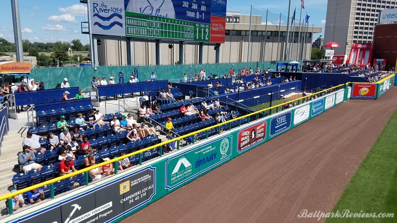 - The Hartford city skyline can be seen from the third base / left field side of the ballpark. While it would have been nice if the ballpark could have been oriented more towards the skyline, this probably was not possible.