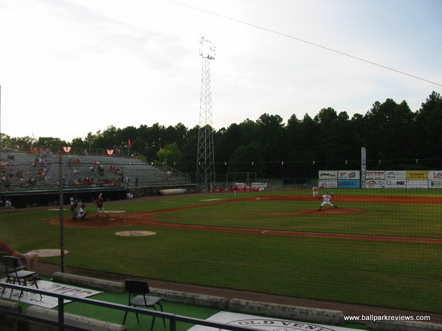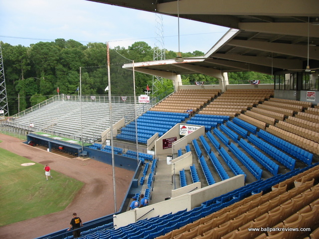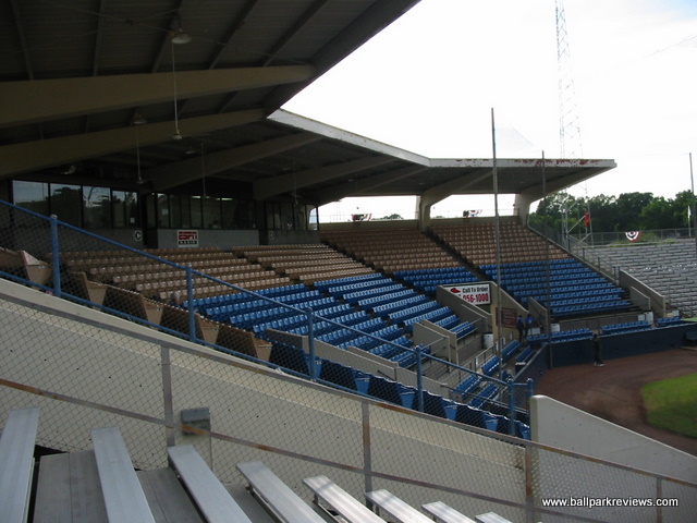 | Smith-Wills Stadium was home to a AA team from 1975 until 1999 when the Jackson Generals moved to Round Rock, Texas. With new parks being built all over, this ballpark quickly became obsolete - at least for affiliated baseball. Fortunately for the baseball diehards in Jackson, the Central League came in immediately and placed a franchise here. The ballpark is located on the east side of the city, right next door to he Mississippi Sports Hall Of Fame. A large concrete grandstand with a small roof sits behind homeplate and contains box seats. This structure is flanked by large metal bleacher sections down each baseline. The concourse runs behind the seating areas and is not covered. A sports bar is located in a building down the left field line. Unfortunately, it is not in view of the field. The setting is very bucolic as it is completely surrounded by tall pine trees. While concessions are limited to the standard ballpark fare, prices are cheap, and the quality is good. The Senators seem to have a loyal fan base, so this makes the atmosphere pretty enjoyable as most are actually watching the game intently. There are a few too many sound effects (they love playing movie clips), but the PA announcer is in to the game, and overall the atmosphere is laid back. There are also a few between inning contests (dizzy bat race, trivia, etc.), but they were not overdone. While Smith-Wills Stadium is suitable for the Central League, there is minor improvements that could be made here. Just some new box seats and a paint job for the roof would drastically improve the appearance of the ballpark. But any improvements seem unlikely at this point. This is because affiliated baseball will be returning to the area in 2005 with the arrival of the Mississippi Braves to nearby Pearl. The Senators have stated that they will still be around next year, but with attendance already sagging in 2004, it is hard to imagine them sticking around long-term. With the Central League dissolving after the '05 season, it appears that Jackson may be without minor league baseball in 2006. Smith-Wills Stadium is certainly not a great or classic ballpark, but the fans who come out are dedicated and they make it a memorable experience. This is just something that cannot be replicated at a new ballpark.