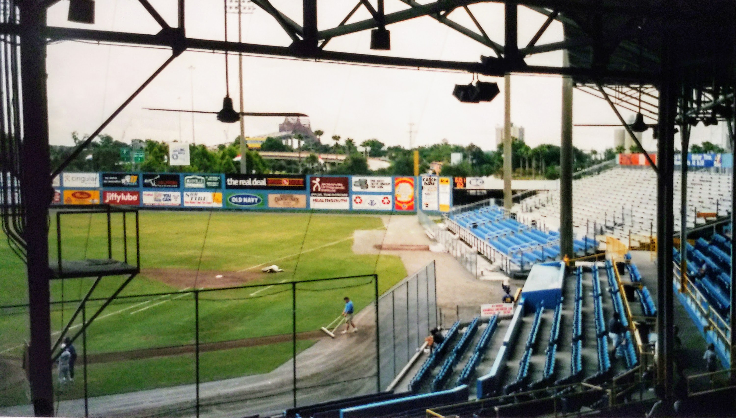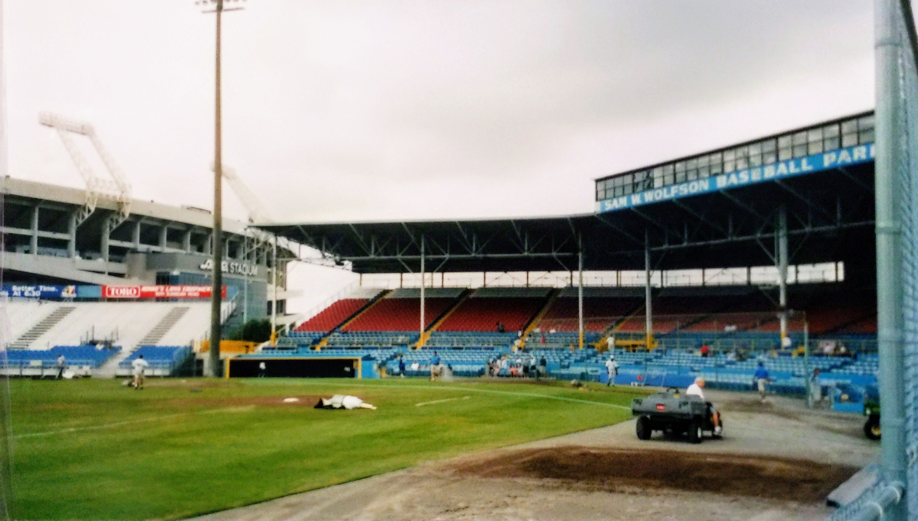 | Wolfson Park was a grand old place to see a game. After passing by it in 1999, I was finally able to take in a game during its final season in 2002. It was situated next to and shared a parking lot with Alltel Stadium, home of the NFL’s Jacksonville Jaguars. Unlike Tinker Stadium in Orlando, the football stadium fortunately did not provide the backdrop.