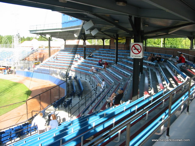 - The ballpark is extremely intimate as the seating consists of a covered grandstand behind home plate and bleacher sections down each line. Almost all the seating is benches (with backs), though there are a few "box" seats behind home plate.