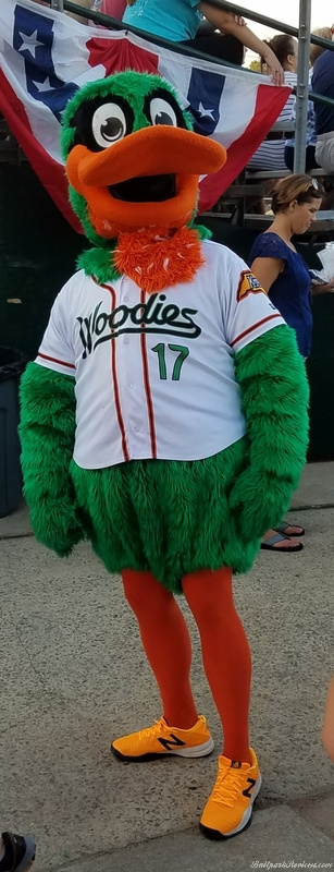 - The mascot (Dewd, an acronym for Down East Wood Ducks) is quite active throughout the game.