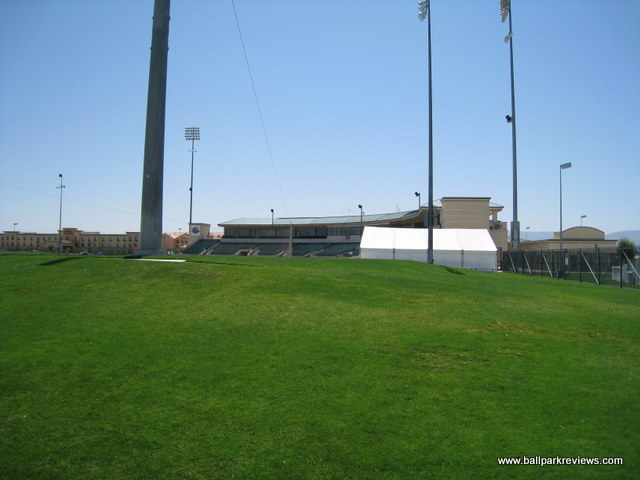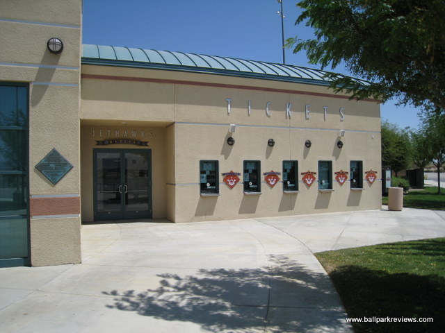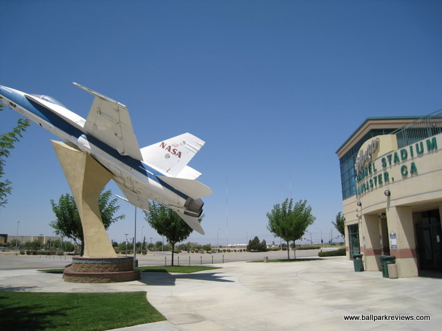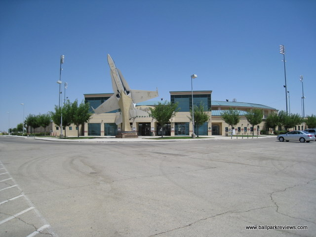 | While I have not seen the inside of Clear Channel Stadium, it is apparently almost an exact copy of Arrowhead Credit Union Park in nearby San Bernardino. The front entrance features a large replica of a plane - this because of its proximity to Edwards Air Force Base. Certainly a park I'll try to back to for a game the next time I'm in California. Though as of 2021, affiliated baseball will no longer be played here. It is yet to be determined whether an indy team will play here. |