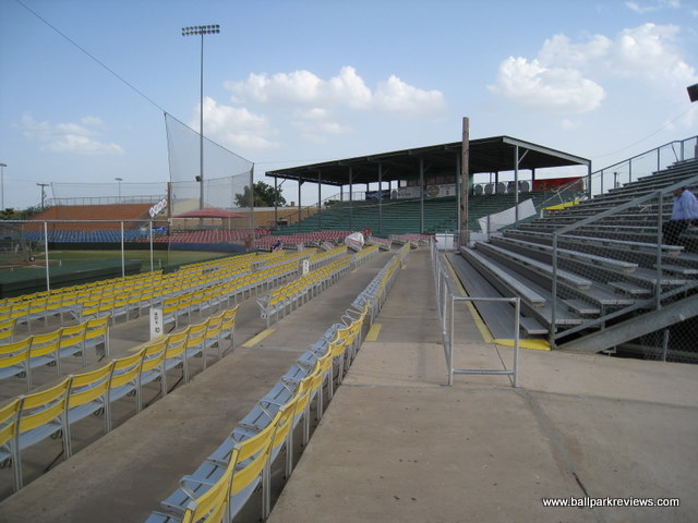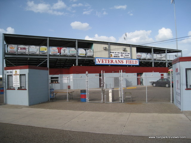 | Usually when I get out of the northeast, I'm fairly certain that I'm escaping much of the over the top atmosphere that plagues many of the ballparks in that area. Unfortunately, the two ballparks that I visited in south Texas on back to back nights were very reminiscent of my "home" ballpark in the Hudson Valley. Both believed that fans were not there to see the game, but were there to be entertained by various sound effects and sideshows. Now I realize that Veterans Field is not a flashy ballpark and that the independent United League doesn't provide the highest level of play, but can you let the game breathe a little bit ? Apparently, the answer is no in Laredo. Located in a residential section to the west of I35, Veterans Field underwent extensive renovations in the 1970's that included the installation of all the metal seating that currently comprises the park. The main grandstand is covered, but is set back a long ways from the field. Fortunately there are box seats at the field level that do provide better views. These seats also provide copious amounts of leg room – probably the most I've ever seen at a park. Besides the box seats, all the other seating is metal bleachers. Sightlines are poor here not only because of the how far back the seats are, but also because the netting obstructs all the seats. The concourse area is located behind the grandstand and features just two concession stands and a small souvenir table. Programs were free, but unfortunately there was no roster inserts to be found. Concession options include frito pies, cheetos with cheese, burgers, polish sausages, and chicken fingers. The prices were fine, but the quality of food left something to be desired. The biggest problem was that they seemed unprepared to serve food when the gates opened and were still struggling as game time approached. This is inexcusable at a professional ballpark. But as I eluded to earlier, this was not my biggest complaint. That came with the atmosphere which just included too much noise. Sound effects and music were blared between almost every pitch. The PA announcer was muffled. And the annoying onfield DJ, the “Dancing Chef”, thought he was the show. It's all a little much if you are there to see a baseball game. Though it seemed like most of the fans were into the game, so I'm not sure why the team finds the need to provide so many distractions. A few between inning games were done, but mostly just junk (t-shirts, balloons, etc.) was tossed into the crowd. Strangely, there is no kid's play area at Veterans Field. There is very little to recommend here. The ballpark is boring, the atmosphere is over the top, and the quality of baseball is poor. The team has been trying to get a new ballpark built on the other side of town and here's hoping it happens. Then at least there may be one reason to go to the ballpark. A new Laredo ballpark will be opening in 2012, but it won't be for the Broncos. Instead, it will be for an expansion team in the American Association. Because of this, the Broncos ceased operations and there will be no professional baseball in Laredo in 2011.