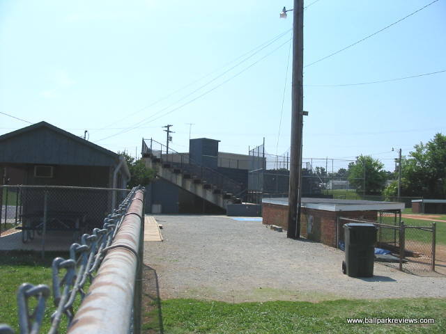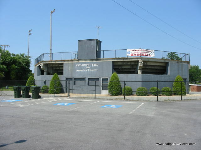 | Holt-Moffitt Field was last used for professional baseball in 1967 when the Lexington Braves of the South Atlantic League called this park home. Before that it had been used on and off by the SAL and the Tar Heel League since its opening in 1938. While the grandstand itself is not too interesting, the playing field does have one distinguishing characteristic. In left field, there is a hill right before the fence that is in play. This is very similar to the one that used to exist at Howard Johnson Field in Johnson City. Unfortunately, I was unable to get inside to take better photos.