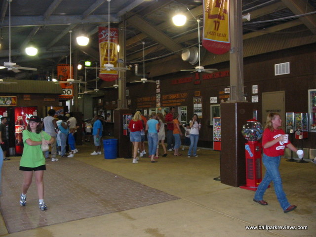 The concession stands were limited, with only hot dogs, chicken sandwiches, and brats available. Prices were quite cheap, and the quality was decent, though one frustrating aspect was that food and drinks had separate lines, meaning fans couldn’t grab everything in one stop. A small souvenir stand was also located in the concourse area.