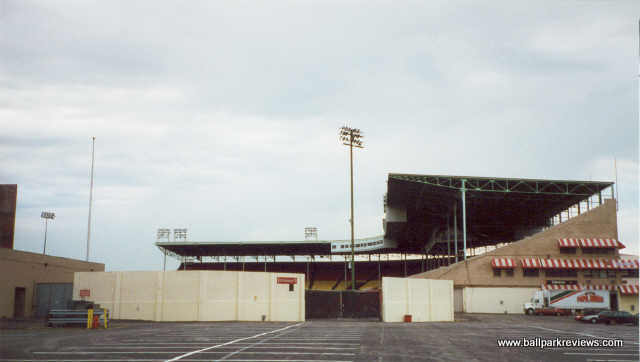 | Cardinal Stadium is where the Louisville franchise played its home games before moving into brand new Louisville Slugger Park in 2000. I stopped by here to take some photos, but was unable to get inside, so can't comment much on it. It appears to be more suited to football with the way the seating is arranged and the artificial turf that is present. Cardinal Stadium is also another park that is located on a state fairgrounds. Due to this, it is necessary to either pay $3 or walk a good distance in order to see this park. I am unable to give any grades for this park as I never did see a game here.