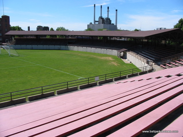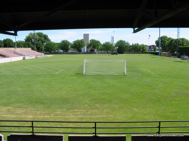 | Breese Stevens Field, located just north of downtown (and in view of the state capitol building), was last home to minor league baseball in the 1940's when the Madison Blues of the Triple-I League played here. While no longer used for baseball, it apparently still gets plenty of use as a soccer and football venue. The grandstand features a small covered section (which would have been used mostly for baseball) as well as a long, uncovered section to be used for soccer and football. Seating is all wooden benches. One interesting feature of the park is the stone wall that surrounds the it. This was erected in 1934, nine years after the park opened. While unfortunately not being used for baseball any longer, it is still nice to see that an old ballpark like Breese Stevens Field is being preserved. It is definitely worth a look if you're in the area.