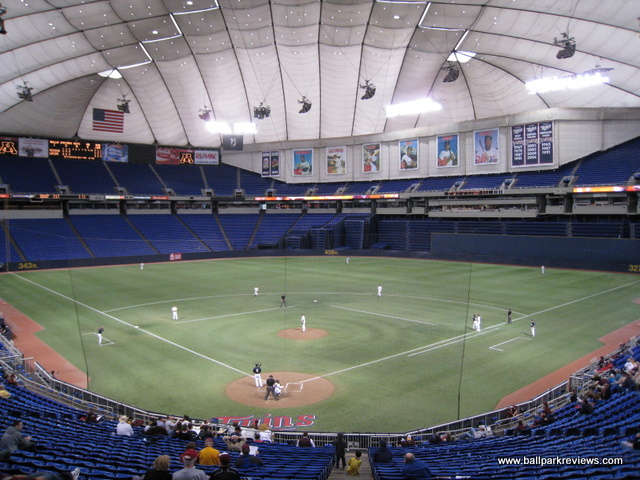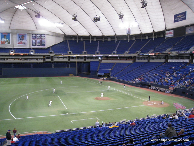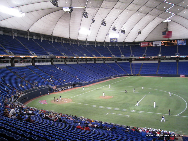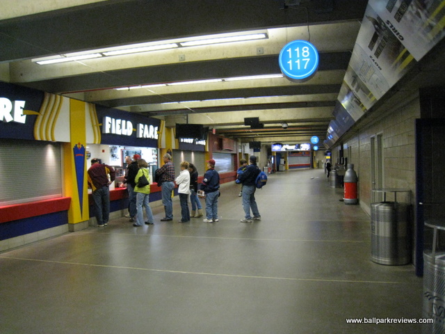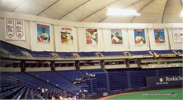 | Without a doubt, the Metrodome is the worst Major League park I've been to. The Kingdome in Seattle may have been worse, but I never got there. The Metrodome was not built for baseball, and the Twins never should have moved here in the early 1980's. Most of the seats are far away from the field, and many actually face away from the infield. The concourse area runs behind the main level of seating and features numerous concession and souvenir stands. Though the selection of food seemed a bit limited for the major leagues, and the prices are a bit steep. The Twins have tried to dress up the Metrodome by placing large murals of former players high above the fence in right field. While this is a nice touch, it doesn't help the game experience at all. The Metrodome is located in downtown Minneapolis. There are several surface parking lots available, though parking does seem to be somewhat limited. In 2006, the Minnesota legislature finally approved a new ballpark for the Twins. Target Field, also located in the downtown, will open in 2010.