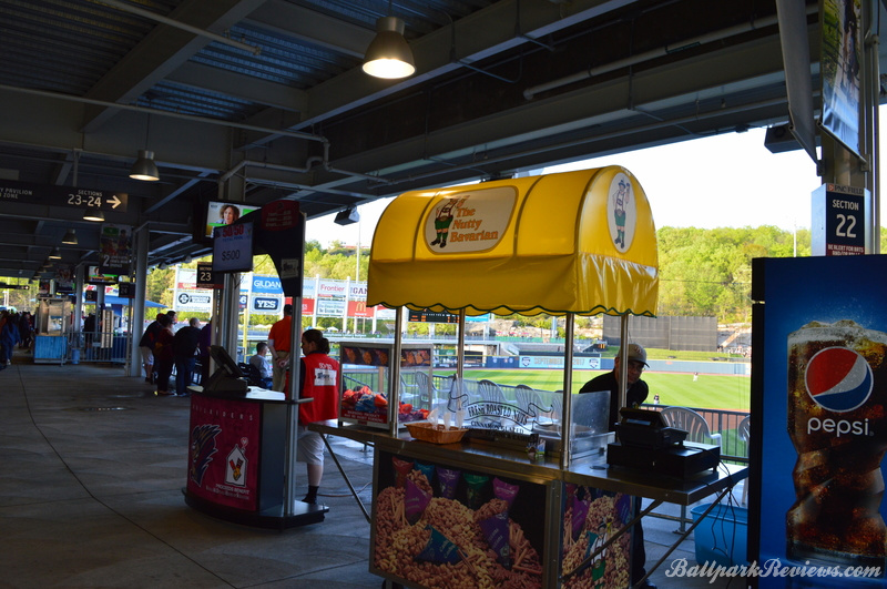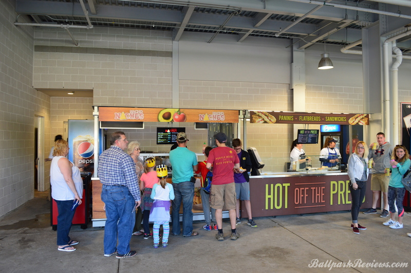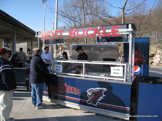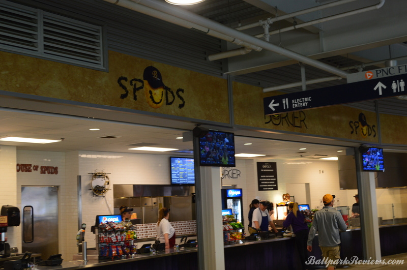 - The main concession stand on the first base side sells specialty burgers and specialty potato dishes like pierogies and topped fries.