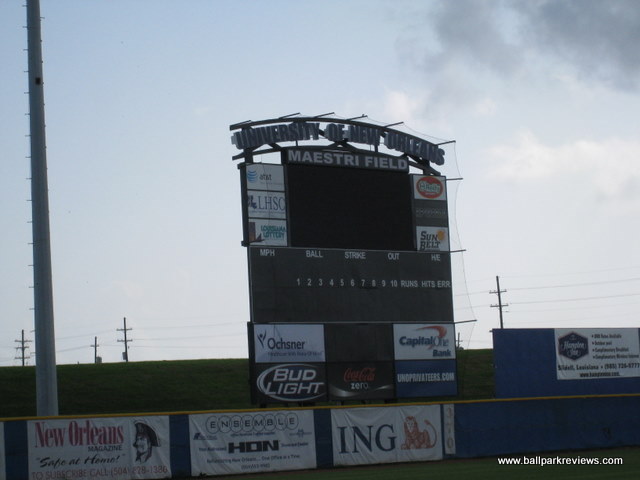 | Privateer Park was a temporary home to the New Orleans Zephyrs from 1993-96 while they were waiting for Zephyr Field to be constructed. It is located on the campus of the University of New Orleans and today is used exclusively by the college baseball team. The ballpark consists of mostly metal bleachers with just a few chairback seats. It is a bit surprising to think a AAA team played here for four years, though it is perfectly suited for college baseball. |
