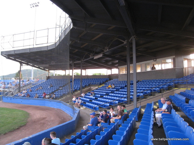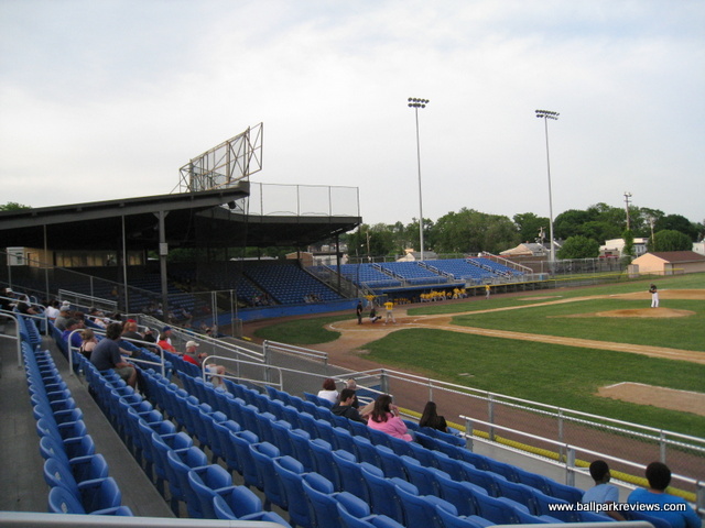| Delano-Hitch was the home of the Newburgh Night Hawks of the Northeast Baseball League from 1995-96 and the Newburgh Black Diamonds of the Atlantic League in 1998. At the time, it was a fine facility for such a low level of the minors - better than some parks which were in use in the New York-Penn League and Northern League. Unfortunately it has been the home of teams with poor management and uncertain futures. The park received some major renovations after the 1998 season. A new building was constructed along the first base line that houses the clubhouses as well as a concession stand. Also included in the renovation was the removal of the rickety wooden bleachers that were down both foul lines. They were replaced by individual folding chairs on a metal grandstand. They really did a nice job of blending the new sections into the existing covered grandstand. A new pressbox was added before the '98 season. Also added for the '98 season was a manual scoreboard in right field. It really adds a nice touch to the park. The field is currently the only problem with this park - it is very uneven, especially in the outfield. Definitely a pitchers park with big dimensions, though it seemed to be a great triples park as the ground is hard, and balls get to the gaps very quickly. Concessions and souvenirs were set up out behind the grandstand on a grassy knoll. The future for baseball at Delano-Hitch does not look bright. There have been no rumors of Newburgh getting a team since the Black Diamonds left after the '98 season. With an ownership group that cared and promoted the team properly, I am confident that a team could draw 1,500 fans a game from this well populated area. A college league team did use this park for several years after the Black Diamonds left, but since then, it has received little use. Though in 2015, professional baseball returned as the startup North Country Baseball League put a team here. The Newts lasted just a couple of weeks, however, and then left the city due to "lack of community support". But that was just a line from the team as the community was never given a chance to support the team because of poor marketing. It is very unlikely that professional baseball will ever return to "The Hitch" as it simply is not a suitable ballpark in this era for anything more than amateur baseball.