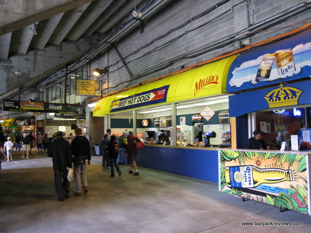 The concourse featured a wide selection of concession stands, offering everything from burgers to Mexican food to sausages and standard ballpark fare. Prices were about average for a Major League park. The stadium was easily accessible from the freeway and had plenty of parking, though it came at a steep price of $14.