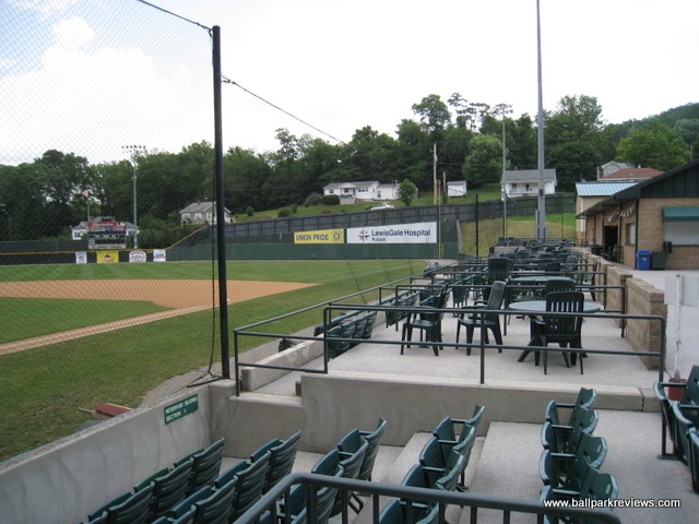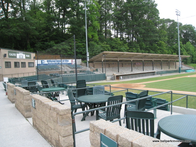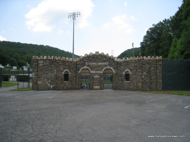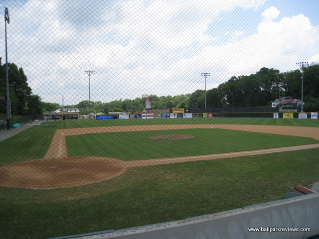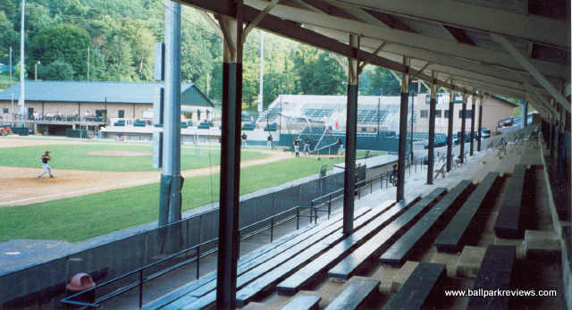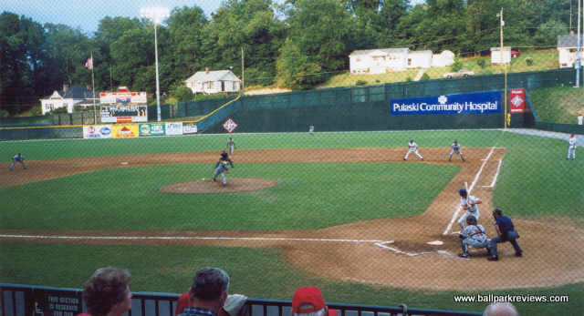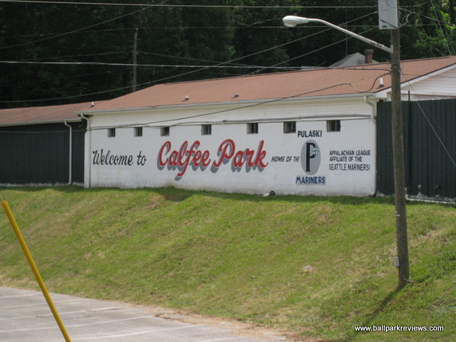 | Calfee Park is half old and half new, making for a very unique ballpark. The original covered grandstand still stands along the third base side of the field. While the box seats, bleachers, and open air luxury suites were all built new in the late 90's. As with all Appy League parks, the seats are right on top of the action and prices are extremely cheap. The location of the park is residential as several houses sit right across the street from the outfield fence. Residents can literally sit on their front porch and watch the game. The drive to the park is also quite unique - you must go up and down a mountain over a winding road. A 19 foot high wall in right field makes for an interesting dimension. The renovations done to Calfee Park are nice, but they failed to do anything with the original grandstand. It has some wooden benches, but other areas that are just concrete. Just putting new benches in the whole grandstand would have made the renovations more complete. Despite this, Calfee Park is still a charming place to see a game. Unfortunately, the Blue Jays pulled out of Pulaski after the 2006 season and left Calfee Park vacant for the '07 season. But professional baseball will return in 2008 as the Seattle Mariners have agreed to put a team here. With the minor league restructuring of 2021, the Appy League was converted to a collegiate summer league and Pulaski was left without pro baseball.