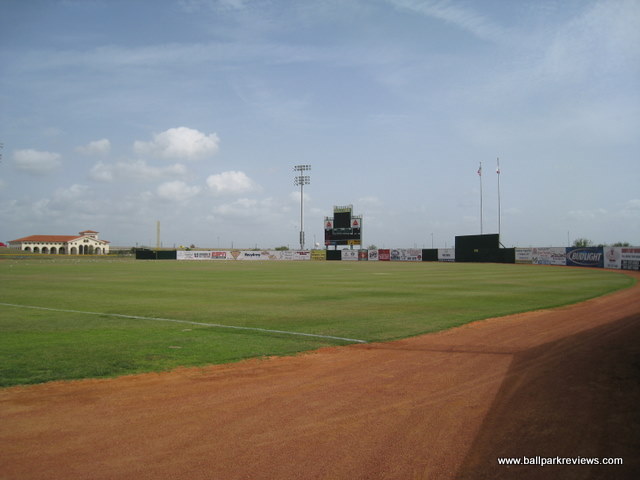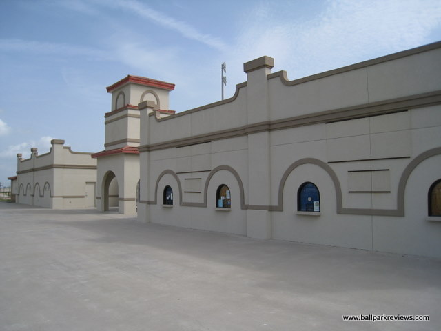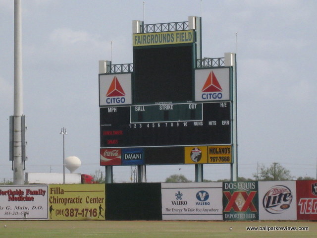 | The saga of Fairgrounds Field could end being a sad one. With the arrival of the Hooks in Corpus Christi (some 15 miles east of Robstown), it seems that the future of this ballpark is in some doubt. While it still was hosting a pro team in 2008, attendance was pathetic (around 100 per game) and the future of the Continental League does not look bright. While I was unable to get inside on my visit, this looks like a nice enough ballpark and would be a shame to see it abandoned after such a short time. The affiliated teams complain a lot about independent teams infringing on their territory, but this is one case that is vice versa. I really hope that an independent team can survive here in the future despite the bleak outlook. It first appeared that no team would be playing here in '09, but with the United League being resurrected, Robstown will get another chance. Unfortunately, after two lackluster seasons, the team has folded. No professional baseball will be played here in 2011.