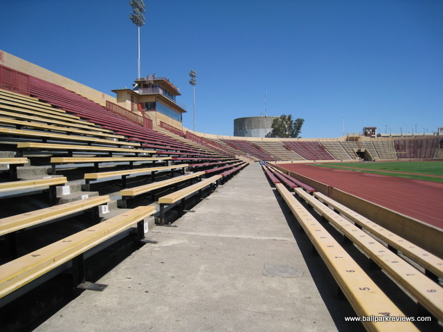 | Hughes Stadium, built as a football stadium, actually hosted professional baseball for three seasons in the 1970's. From 1974-76, the Sacramento Solons of the Pacific Coast League played here. Apparently the left field foul pole was only 233 feet from home plate - shorter than even left field in the LA Coliseum. I was unable to get inside during my 2010 visit. |