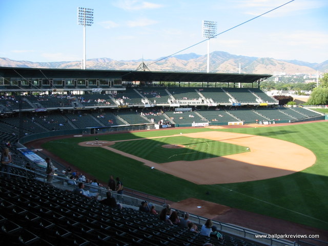 | In the state of Utah, you can build a park almost anywhere and get a great view of the mountains. Smith's Ballpark is no exception. A fine ballpark in its own right, it's the setting that is the most memorable feature. With a great view of the Wasatch Mountains beyond the outfield fences, settings just don't get much better than this. Though built in 1994, Smith's Ballpark actually feels newer than that. This is due to having amenities (such as a wraparound concourse) that are typically found in ballparks built after 2000. Additionally, the ballpark is kept immaculately clean, which also helps maintain its fresh feel. Its location, a couple of miles south of downtown, means there is no view of the skyline, but the mountain backdrop more than makes up for it. The ballpark’s structure most resembles Chukchansi Park in Fresno. There are two levels of seating, each holding about the same capacity. The luxury boxes and press box are located at the top of the second deck, meaning all seats have a good view of the field. For overflow crowds—or fans who enjoy sitting on blankets—there is ample berm seating behind the outfield fences. Large picnic areas in the outfield add to the casual charm. The open concourse features numerous concession stands offering a wide variety of food, including BBQ, Mexican, Chicago dogs, deli sandwiches, and pizza. The quality is good, and the prices are reasonable, though some costs do lean higher. Box seats on the first level were priced at $20, programs cost $4, and parking (plentiful) was $5. The atmosphere at Smith's Ballpark was refreshingly baseball-oriented. Despite the presence of an on-field DJ and a few between-inning games, the crowd generally seemed engaged in the game itself—even on fireworks night, which often attracts non-baseball fans. A large team store located behind home plate provided merchandise options, though the selection didn’t feel particularly diverse. After serving as the home of the Bees for 31 seasons, Smith's Ballpark closed its chapter as a baseball stadium at the end of the 2024 season. In 2025, the Bees relocated to a new ballpark in South Jordan. Looking forward, Smith's Ballpark will be repurposed as a mixed-use entertainment venue, ensuring its continued relevance in the community. Clean, comfortable, and with a spectacular setting, Smith's Ballpark stood out as one of Utah's finest venues during its time as a baseball park.