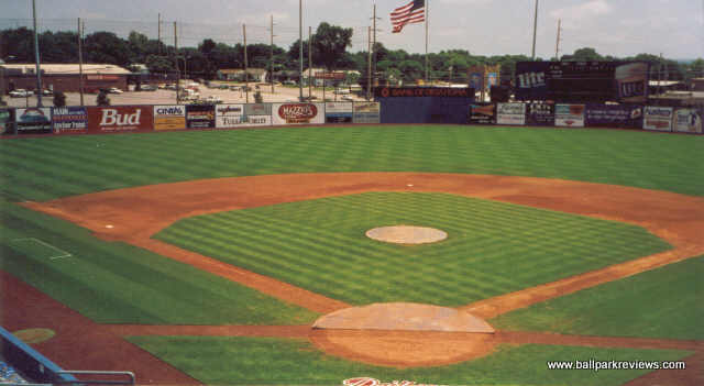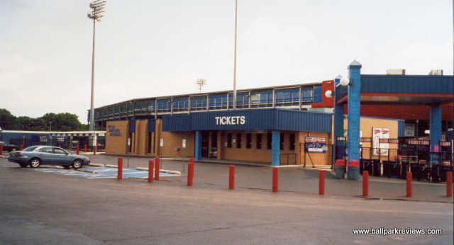 | Drillers Stadium is another midwestern park built on a county fairgrounds similar to Toledo and Louisville. This is probably the best of the three, however, as it was built exclusively for baseball. The stadium is a bit strange in that the majority of the seats are in the upper deck. Despite this, most of the seats are not too far away as the deck is not that high. Most of the upper deck is covered, while none of the seats in the lower level are. Poles can obstruct the view of some seats, but only when there are large crowds. The seats are all metal so can be very hot until the sun goes down - fortunately they start most games at 7:30. The concourse area is located behind and beneath the grandstand. There are numerous concession stands offering a wide variety of food from pizza to hot dogs to fajitas. The fajitas here are great - for $3 you get a huge tortilla stuffed with chicken or steak and all the fixings. All the concessions are reasonably priced. A small souvenir stand is also located on the concourse - the prices here were not as reasonable. My only complaint about the concourse was the lack of picnic tables. With how spacious it is, it would be nice to see more tables for people to eat at. While the park is located on the fairgrounds, it still borders two streets. Because of this, a large netting has been erected in the outfield to protect passing cars. Only a couple of on-field contests were done, and sound effects were kept to a minimum. A mascot named Hornsby was present, but only made one brief appearance. Drillers Stadium may not measure up to some of the newer stadiums, but is still a suitable park for Double-A baseball. But because all the other teams in the Texas League had shiny new parks, Tulsa decided to follow suit. A new downtown ballpark will open in 2010. The city has not yet decided what will become of Drillers Stadium.