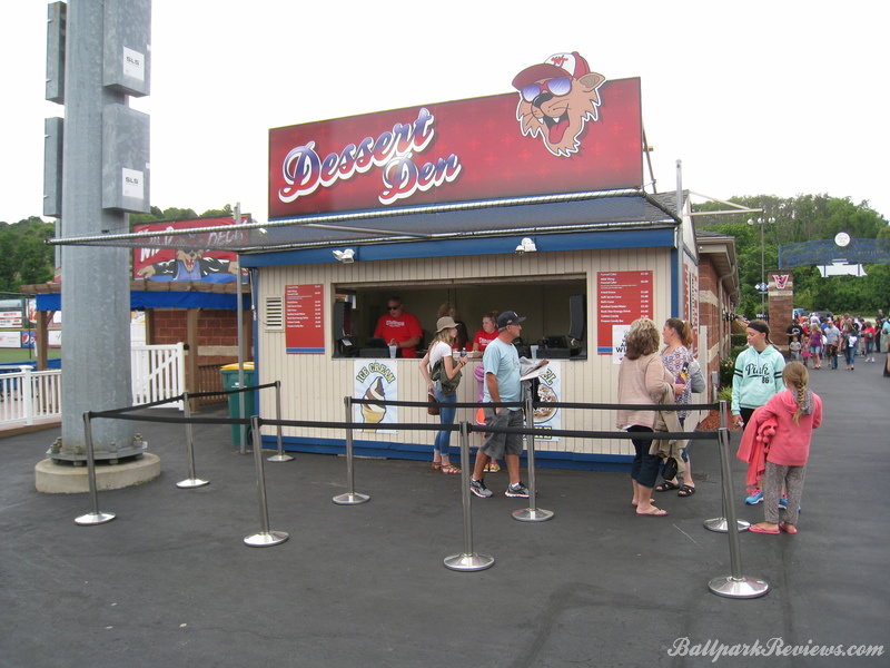 - The Dessert Den, located down the first base line, has soft serve ice cream ($5), fried oreos ($5), and funnel cakes ($5.50).
