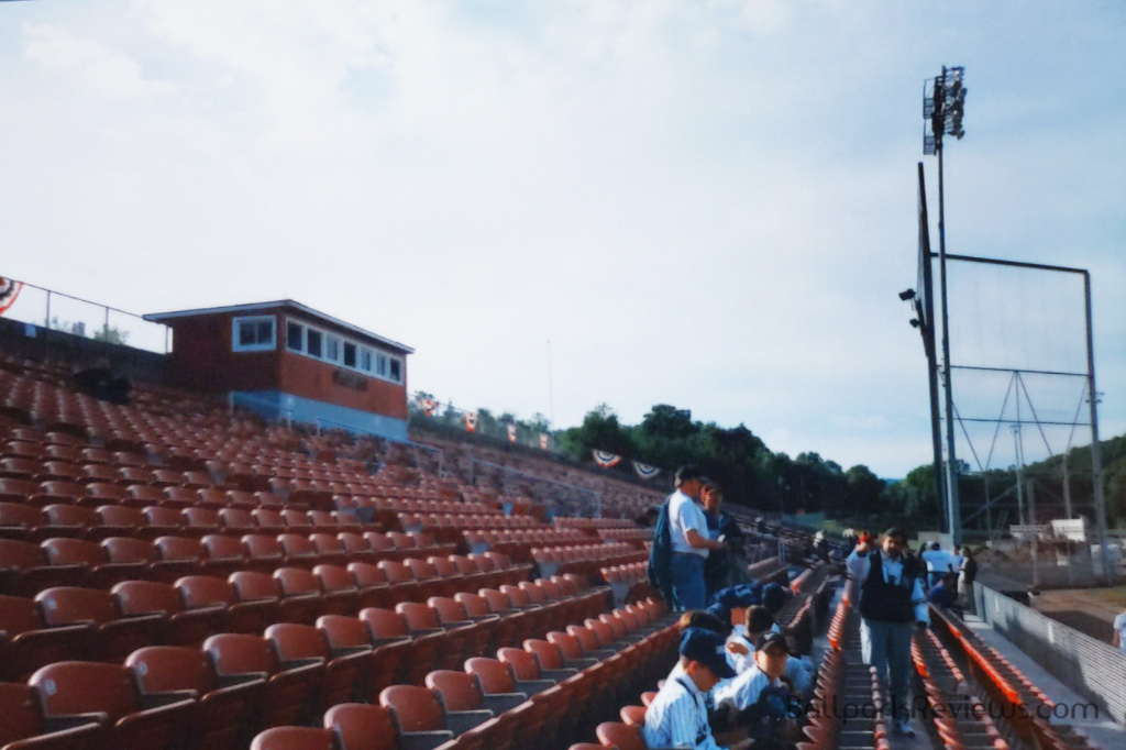 | Municipal Stadium was home to the Waterbury Spirit of the independent Northeast/Northern League from 1997-2000. This is also the former home of a Double-A team in the Eastern League until 1986. It is configured more like a football stadium than a baseball park. Almost all of the seating (uncovered) lies along the first base line. The seats are all individual, but somewhat cramped. Nothing distinguishes the box seats from the reserved seats except proximity to the field. Though I believe that some of the reserved seats might actually have better sight lines than some of the box seats. They also have club level seats that actually are higher up than box seats but provide an unobstructed view (a chain link fence obstructs some box seats). These club level seats also provide more leg room as they are grouped in 2 and 3 seat blocks. The dimensions of the park are huge - 350 to left, 400 to center, 340 to right. Also, the backstop is only about 40 feet behind home plate, and is much taller than what you would normally see at a ballpark. There was a wide variety of concessions at a stand behind home plate. Ticket prices were a little high - $9 for club level, $7 for box seats, and $5 for reserved. The team tried hard to make it an entertaining place with numerous between inning contests. Also on hand was Sammy Spirit, the team's mascot dressed as a bird. Overall, it was not a great place to see a ballgame, though the atmosphere kept most fans interested for the majority of the game. While the team did not officially fold, it was dormant starting in 2001.