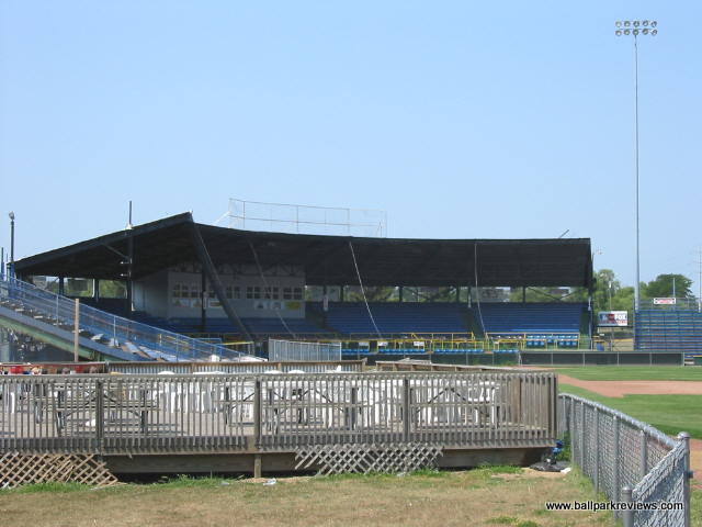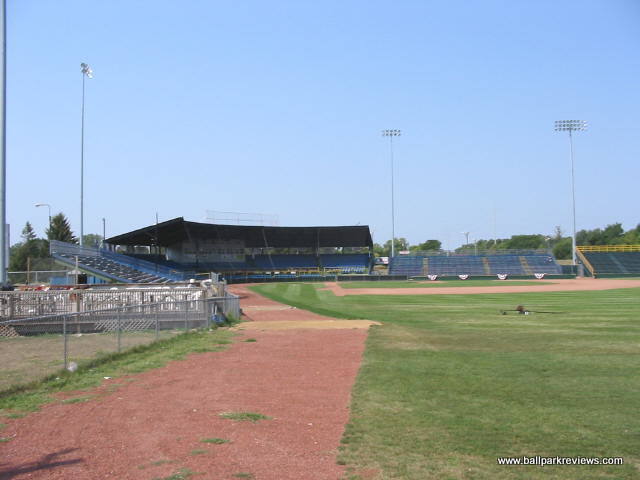 | Riverfront Stadium was formerly the home of a Midwest League franchise. It last hosted professional baseball in 1993, when the Waterloo Diamonds called this park home. Currently, it is home to the Waterloo Bucks, a college league team in the Northwoods League. While I was unable to get inside on my visit here, it appears to be a gem of a ballpark that is still well maintained. The grandstand behind homeplate is mostly covered and features a couple hundred box seats. The rest of the seating is made up of bleachers. Riverfront Stadium (formerly known as Municipal Stadium) is also the subject of a great book, Waterloo Diamonds, which focuses on the front office staff during the team's final season here. While it probably will never host pro ball again, it is great to hear that college league ball is thriving in Waterloo. This should guarantee that Riverfront Stadium will be around for many years to come.