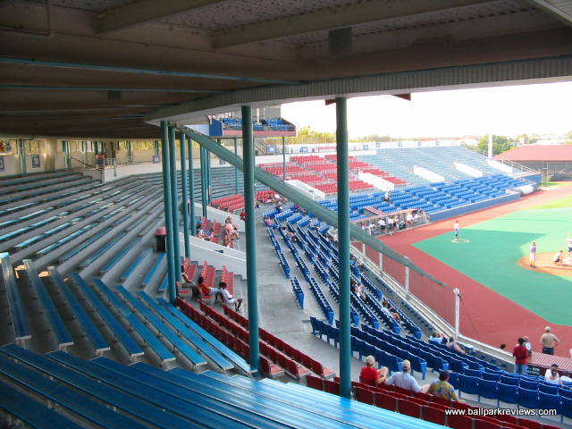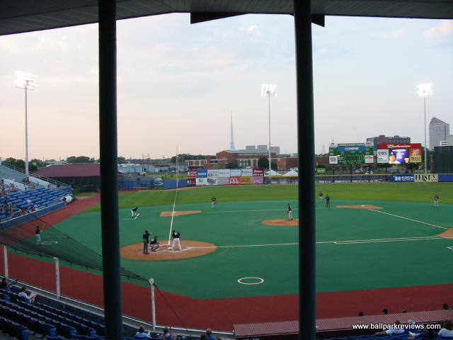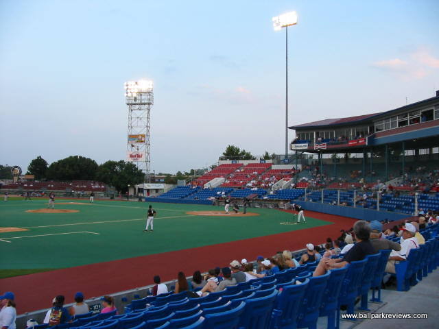 Lawrence-Dumont Stadium was similar in its physical structure to Omaha's Rosenblatt Stadium, only on a smaller scale. It was an older park that had undergone several renovations over the decades. While it likely lost some of its original charm (mostly due to the artificial turf infield), the park remained a fine place to see a game. The grandstand featured some box seats, but the majority of the seating consisted of benches. Luxury boxes were built on stilts, providing covering for seats behind home plate, though this also resulted in some obstructed views. The renovations led to a concourse that allowed fans to circle the entire park. Along the outfield concourse stood the National Baseball Congress Hall of Fame. The NBC tournament was held there each August and featured some of the best college league teams. The concourse behind home plate included a tribute to many of the famous players who had played in Wichita. Concessions were varied and reasonably priced, offering items such as brats, tacos, hot links, and burgers. A small gift store, "The General Store," was located off the concourse behind home plate. The atmosphere at Lawrence-Dumont was an interesting blend of old and new. The "old" was represented by a manually operated scoreboard that was a recreation of the one used in 1947. Just like at Quebec’s Stade Municipal, a goose laid an egg whenever the opposing team failed to score. The "modern" elements were less endearing. Sound effects were frequent, including an annoying laugh played after each out made by the opposing team. One quirky tradition involved kids obsessively collecting trash in exchange for a free ball once their bags were filled. The ballpark was located just west of the Arkansas River, with some of the city skyline visible in the backdrop. Parking was both plentiful and free. Lawrence-Dumont Stadium was certainly one of a dying breed. Few old parks remained in Double-A baseball, and for a while, there was hope it could hang on to its professional team. With a few more upgrades—like more comfortable seating and a real grass infield—it might have received more recognition as a classic. But as it stood, it lacked none of the amenities an average fan needed. Unfortunately, due to subpar attendance, 2007 turned out to be the final season for the Wranglers in Wichita, as they relocated to a new ballpark in Springdale, Arkansas. An independent league team took over Lawrence-Dumont starting in 2008. However, in May 2018, it was announced that the stadium would no longer host baseball after the 2018 season, as the city chose not to invest further in the aging facility. Later that summer, plans were unveiled for a new ballpark to host a Triple-A team by 2020. Lawrence-Dumont Stadium was ultimately demolished in the fall of 2018 to make way for the new venue.