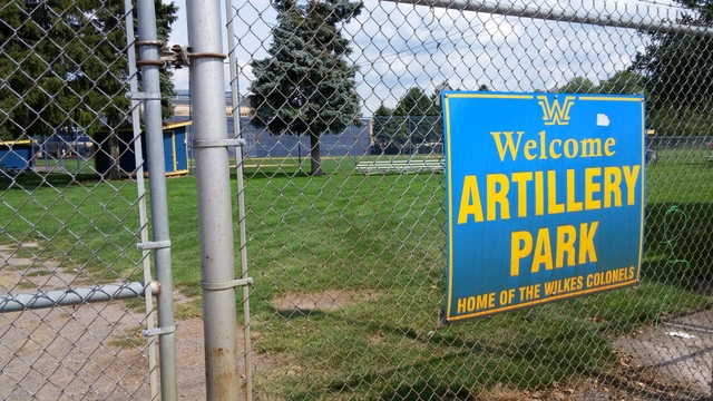 | Artillery Park was home to numerous Wilkes-Barre professional teams during the first half of the 20th century, mostly as part of the New York-Penn and Eastern Leagues. It is not clear when it was built, though it was definitely around in 1926 when Babe Ruth played an exhibition game here. Today, just a ball field exists on the site, though presumably there was a grandstand of some sort at one time. In 2012, a kiosk was constructed to commemorate a long home run that was hit by Babe Ruth here during his 1926 visit. The kiosk indicates that it is the longest known home run that Ruth ever hit - some 650 feet. It is located close to the place where the ball landed, which is between where a softball field and track not reside. Wilkes-Barre has not hosted professional baseball since 1955, though its name is on the current team which plays 15 miles north in Moosic.