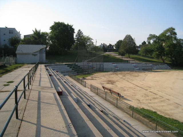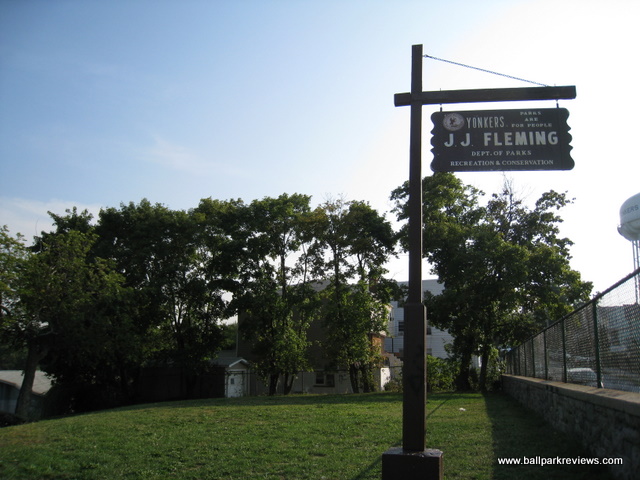 | Fleming Field was home to one of the worst professional teams ever, the Yonkers Hoot Owls of the 1995 Northeast League. They finished with a dreadful 12-52 record and did not return to the league for a second season. While the team probably had little talent, their home park probably didn't help much either. From other photos I've seen, the park pretty much looked the same in 1995 as it does today. Which means it had no business hosting professional baseball. The infield was all dirt and there was no real dugouts. As could be expected, attendance was dreadful as well, despite being in a populated area. Yonkers has been trying for the last decade to get a new ballpark built for the Atlantic League, but you have to wonder if their first experience with independent baseball has poisoned the area. I never saw a game at Fleming Field, but sure wish that I had !